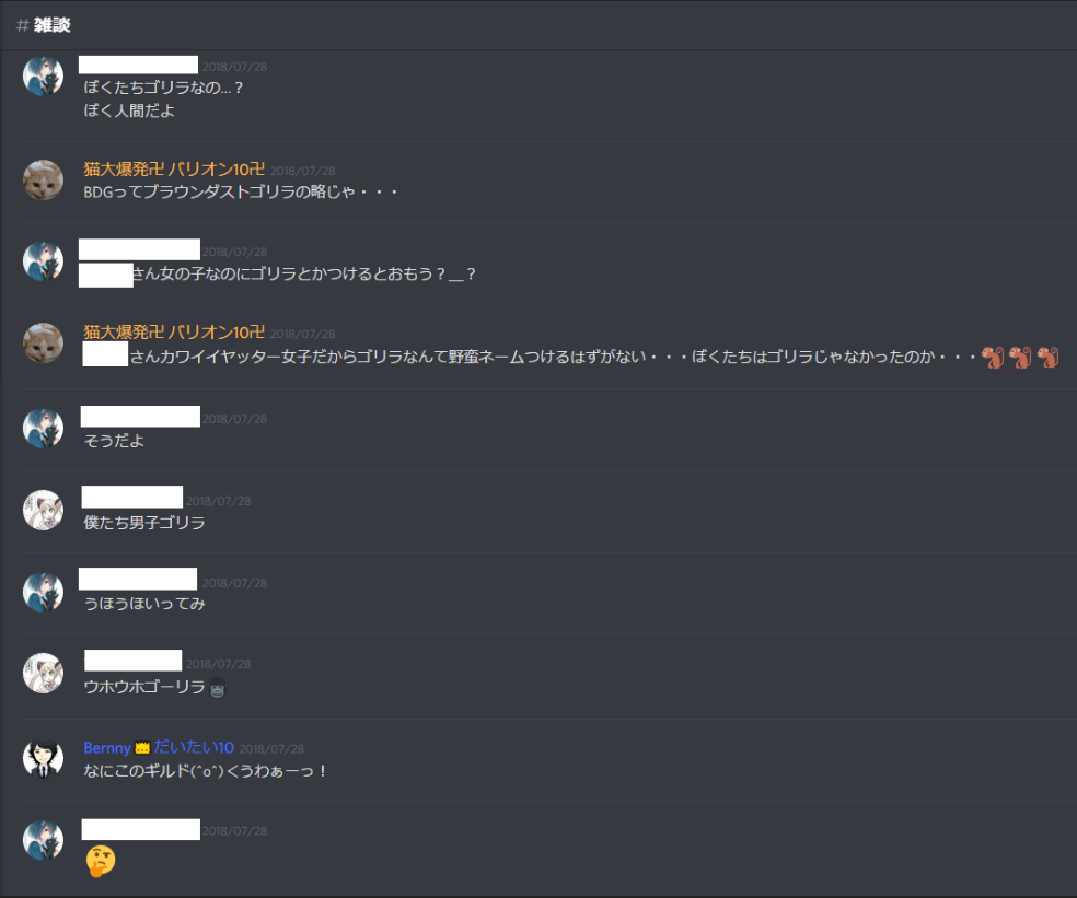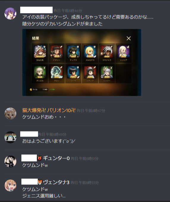ギルド戦ある時は自然とギルド戦の話が多くなりますが、無い日も雑談普通にしてます('ω')
