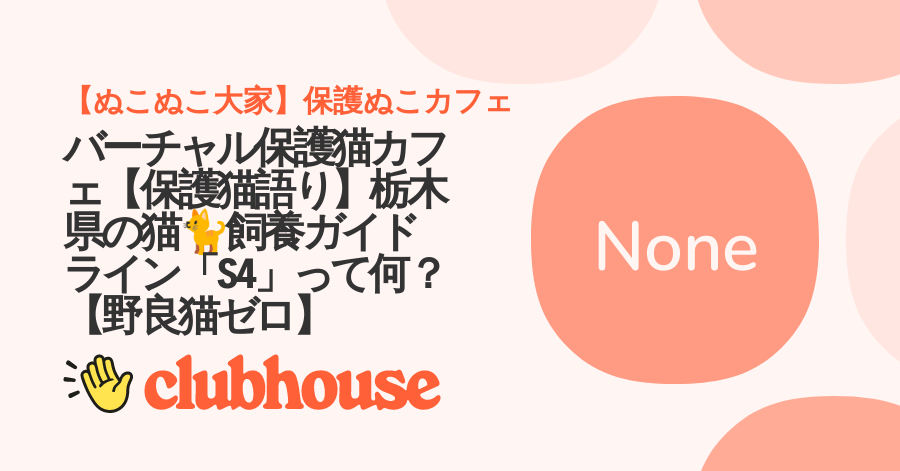 バーチャル保護猫カフェ【保護猫語り】栃木県の猫🐈飼養ガイドライン「S4」って何?【野良猫ゼロ】 - 【ぬこぬこ大家】保護ぬこカフェWith Mari Asari・ぬこぬこ大家, hosted by 【ぬこぬこ大家】保護ぬこカフェwww.clubhouse.com
