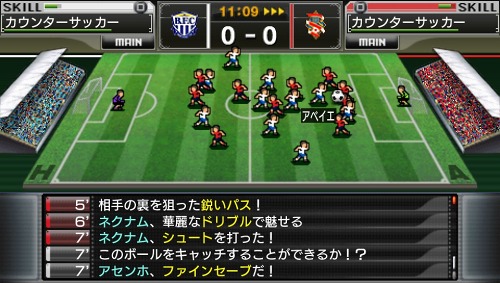 試合シーンは基本的に,上のスクリーンショットのような「ミニピッチ画面」で展開し,状況に応じて「チャンスシーン」が挿入される。前作より多くのシーンが用意されているとのこと