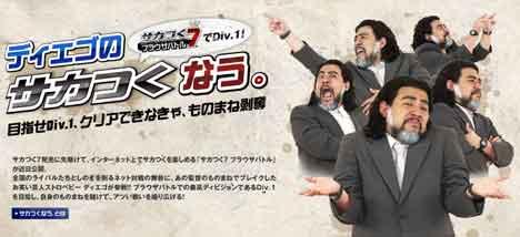 ディエゴさんが,サカつく7を題材とするブラウザゲーム「サカつく7ブラウザバトル」をプレイし,指定期間内にディビジョン1へ進出することを目指すという内容