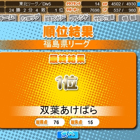 ディビジョン5は突破できるか?というと・・・、リーグかえたのでチームがまだ1年目ということで、まあ、勝てないでしょうw