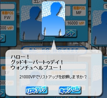 有力選手の注目度Aっていうことで、どれだけレアな選手がでるのか、高い21000VPのスカウトを選択