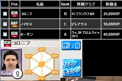 これからブラウザバトルでサカつくを勉強してみようかなという人にみてもらいたい、選手入れ替え画面