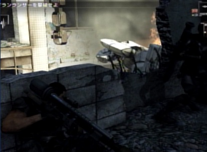 右手にスナイパーライフルが落ちているので取って、隠れてうつんですが、敵が一撃で死亡するスナイパーライフルはなんか対戦車ライフルうったみたいな感覚