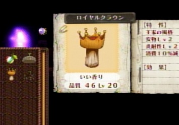 師匠からぼったくり価格でロイヤルクラウン買うか、エントのボス倒した後に頂上でとるしか、瓶づめキノコが調合できないんですね