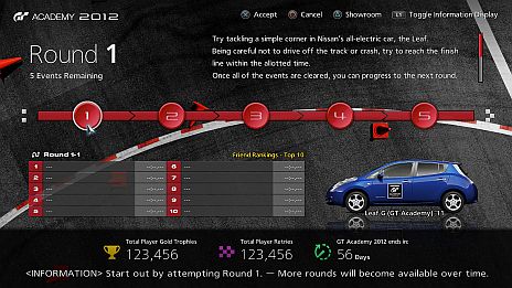 本作には、カレンダーに従って配信される8つのラウンドがあり、ラウンド内のイベントをクリアすることで、徐々にプレイヤーのドライビングスキルが上達していくシステムになっています。イベントをクリアするとタイムに応じてトロフィーがもらえるほか、ラウンド内の全イベントで規定の成績を上げると、『グランツーリスモ5』で使えるプレゼントが入手できます。