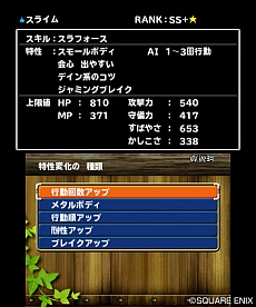 たとえ初めはFランクのスライムでも、究極配合で生みだせば無類の強さを発揮する!