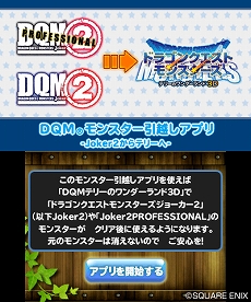 ソフトに同梱されるコードを「ニンテンドーeショップ」で入力することでダウンロードできる『DQMモンスター引越しアプリ』があればゲームのエンディングに到達したあと、このアプリを使ってなんと『ジョーカー2』シリーズのソフトから1日10体まで仲間モンスターを“引越し”させることができるのだ!