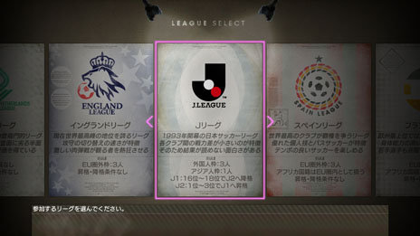 また、「Jリーグ・海外クラブスタート」は、Jリーグの実在クラブと欧州リーグのオリジナルクラブから選択できゲームを始められます。