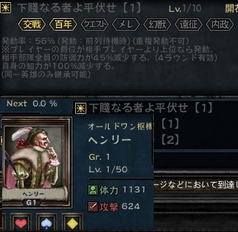 100年戦争参加で得られる アメジスト 50枚に1枚で発見できまして、キャラ固有スキルですね