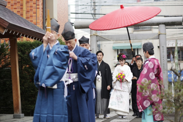 挙式の際には参進をする参道の風景、この時期だけこんな感じになるんです。