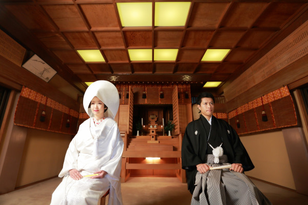 神道の、つまり日本古来の神様に誓いを立てる「神前式」。