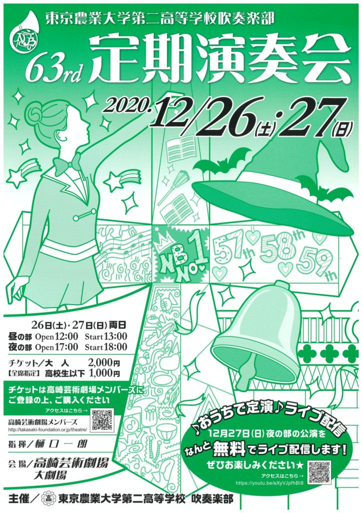 (群馬県)東京農業大学 第二高等学校 吹奏楽部(バンドネーム“EMERALD KNIGHTS”) 第63回定期演奏会が12/26,27 昼・夜と4回公演されました。
