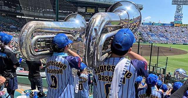 今回のセンバツ甲子園ではアルプススタンドでの応援団ブラスバンド演奏は禁止されましたが代替措置としてブラスバンド録音音源の球場での再生放送がおこなわれました。