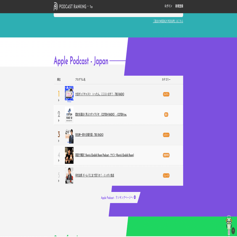 Podcast Ranking というサイトは、今人気のポッドキャスト番組を掲載しています。今流行っているポッドキャストの中に自分の興味のある番組を選びましょう!