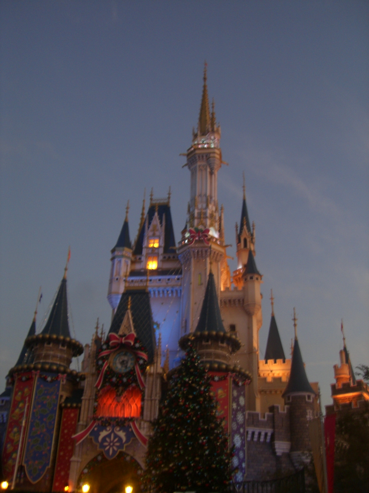 デイズニーランドのシンデレラ城。クリスマスのライトアップが施されていました