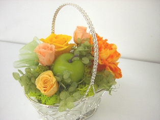 挑戦!茨城県筑西市のお花の教室f.messageです。ブリザーブ初挑戦!!いつもは生花のアレンジメントコースを受講してくださっている方ですが今回プリザーブドフラワーに挑戦してくださいました。手際よくあっという間に完成♪ビタミンカラーで元気が出る色ですね。