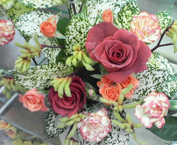 体験レッスン筑西市のお花の教室。フラワーデザインスクールf.messageです。体験レッスンの作品。生花の扱い方、カットの仕方、吸水性スポンジの扱い方等のレッスン。今回は少し秋らしい落ち着いたお花の組み合わせです