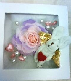 またまたメリア茨城県筑西市のフラワースクールf.messageです。ピンク系のメリアinフレームNちゃん頑張りました!12mmのパールとハート型のパール調のピックがメリアを引き立たせています。あれこれ試行錯誤しながら納得のいく作品になりましたね!また気が変わったらいつでもどうぞ♪