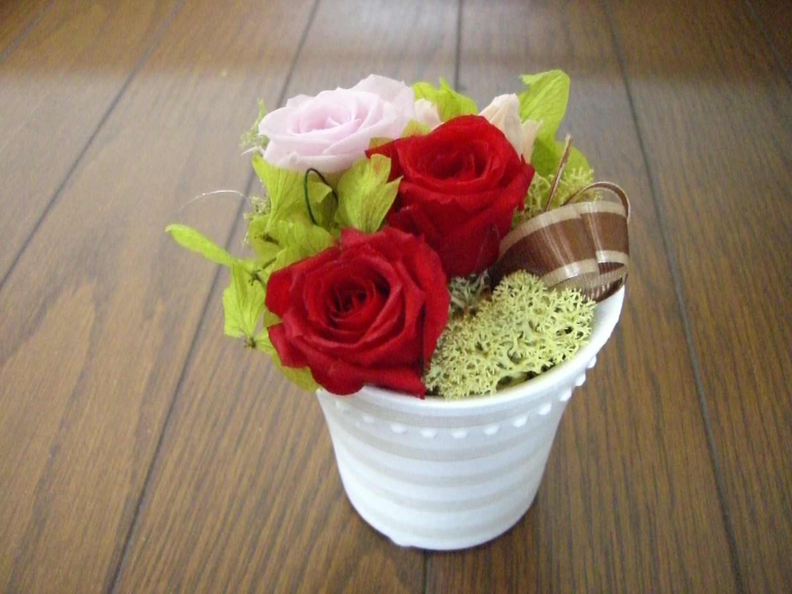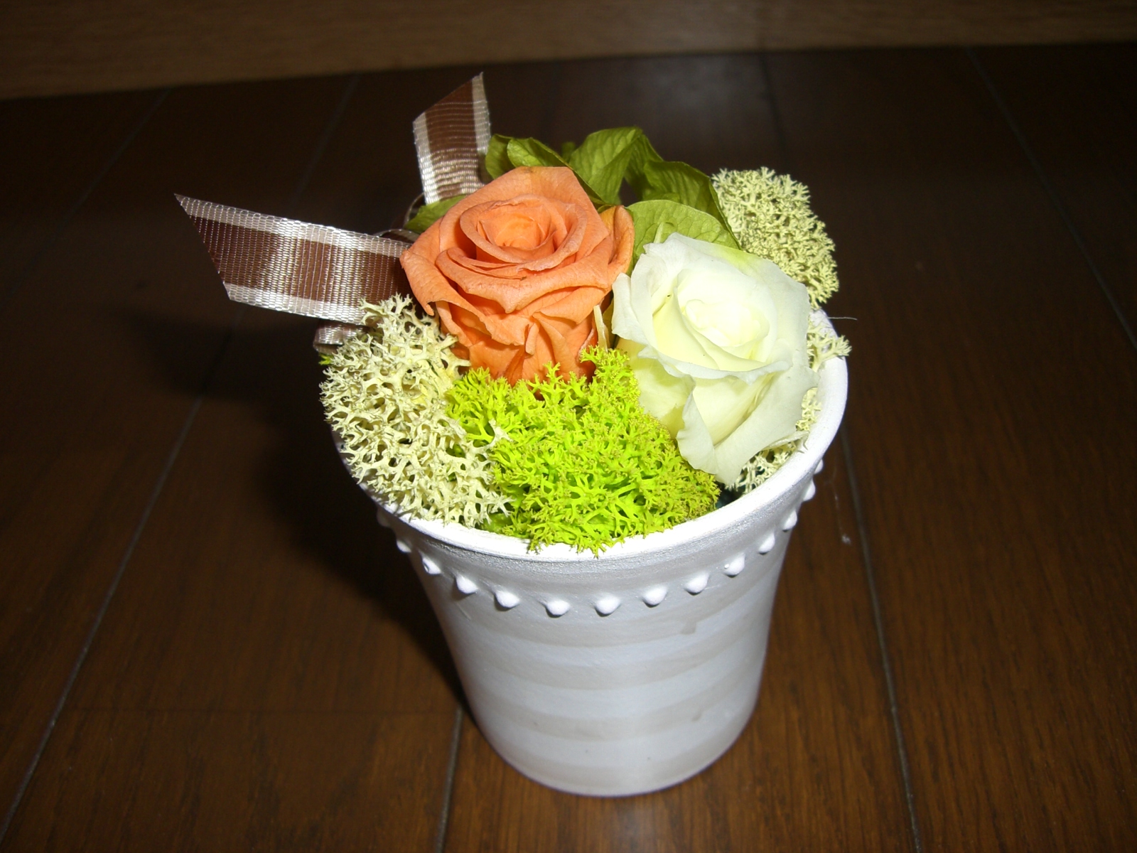 体験レッスン筑西市のお花の教室。フラワーデザイン F・messageです。プリザーブドフラワーの体験レッスンの作品です。各コース体験レッスンも受けていただけます。どのようなものなのか試してみたいときにぜひどうぞ