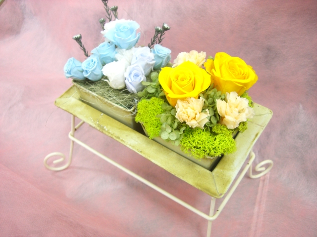 プリザーブドフラワーの作品数点を