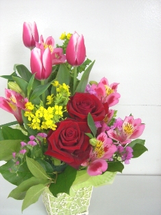 卒業シーズン茨城県筑西市のお花の教室f.messageです。卒業という事で春らしいアレンジメント今日は高校の卒業式があるそうです。この辺では1日のところと3日のところがあるようですね。進学される方も、社会に出る方も不安や期待があると思いますが卒業おめでとう。