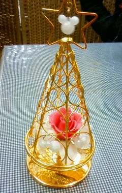 ミッキー茨城県筑西市のお花の教室 ミッキーのツリーをプリザーブドフラワーで飾りましたこのツリーは持参してくださいました。とっても可愛らしく仕上がりました。当スクールは器や花材持込でのレッスンも行っております。お気軽にご相談下さい。