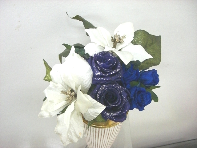 クリスマスアレンジその2茨城県筑西市のフラワースクールf.messageです。ラメアレンジ限定カラーのラメローズレッド・ブルー・ホワイトの3色をご用意しました。真っ白のポインセチアと組み合わせたアレンジメントレッスン。ブルーはすみません!残りわずかです・・・。ホワイトは多めに残っています♪こちらも期間・数量限定です。レッスン料:¥3000(受講料・材料費込み)お申し込み・お問い合わせTEL:0296-57-7564メール:info@fs-hanaclub.com