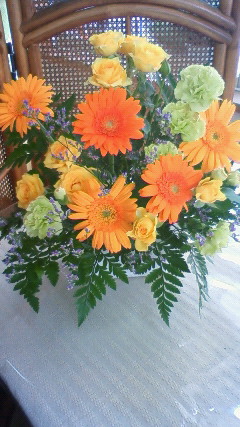 キッズレッスン茨城県筑西市のお花の教室f.messageです。小学2年生の女の子の作品月に1回ペースですが、毎回成長がうかがえます。いつものびのびと、そして、小さなアドバイスを自分なりに活かしてくれています。コチラの作品は1本だけ挿しなおしましたがあとは手直し無しです♪