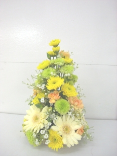 お花をぎっしり詰め込んで三角錘を作りました。