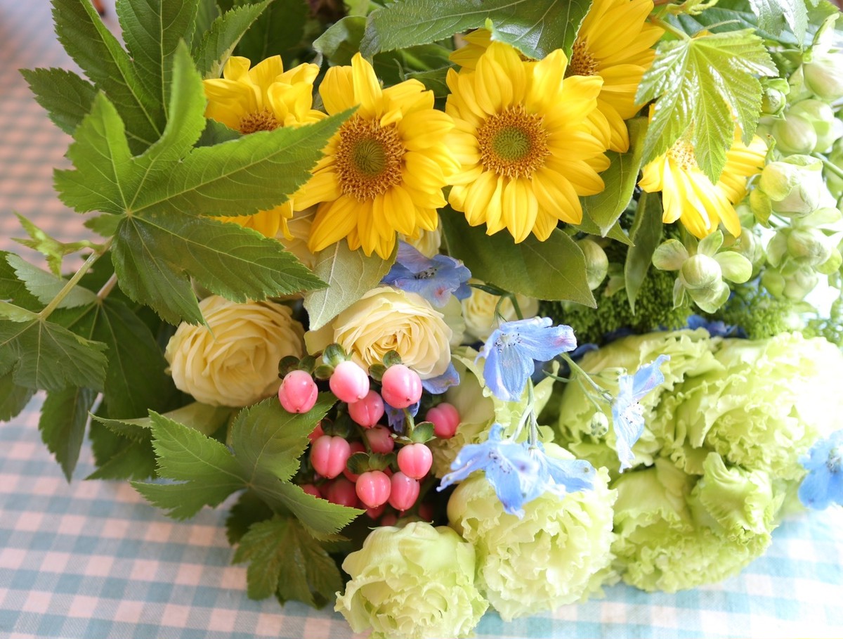 花材が豊富にある場合は葉を取り除いた方がまとめやすいし