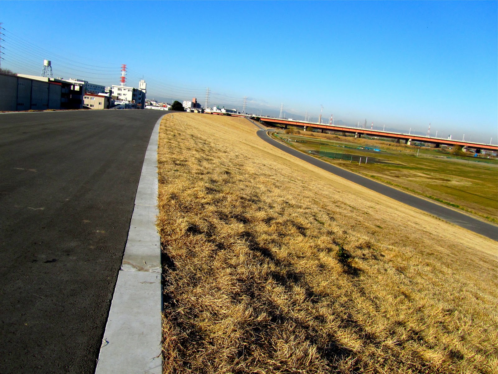 それでもわたくし、満腹ですから遠回り!。Y野隊長と二人で、昨日に引き続き武蔵野線の陸橋突き当たりまで行ってきました。この心がけが太らない秘訣なんですよ。
