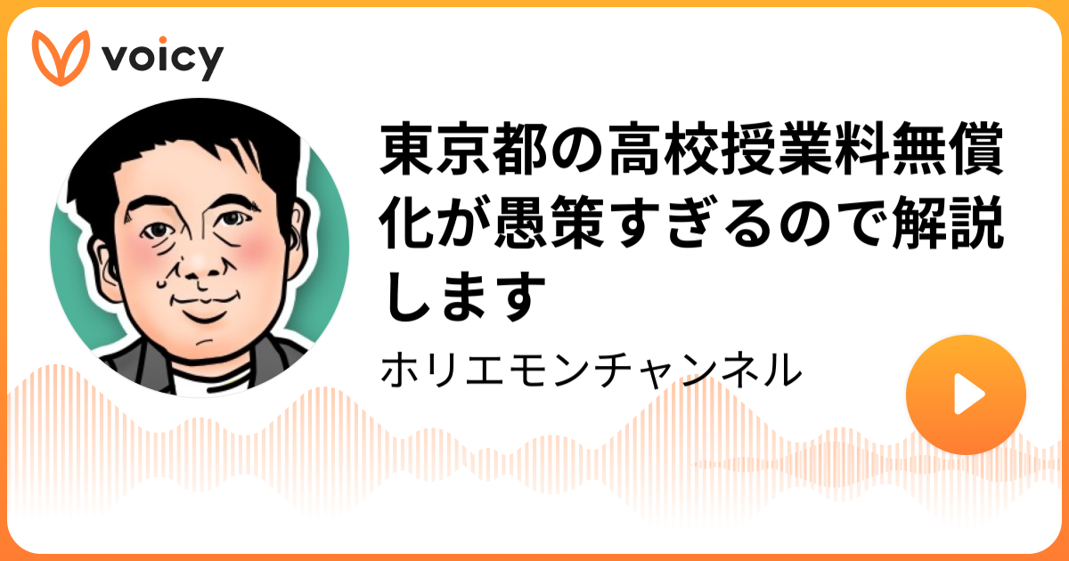 先日書いた高校無償化についてホリエモンがこんなことを言ってた。