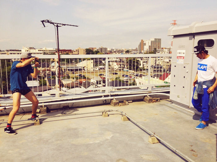 Photo Shooting今日は天気が良かったんで、入荷したアイテムたちを着てもらって久々に撮影。近くアップします!履いてるのを脱いで、着てもらったりのトリッキーなシューティング。の、模様をまた撮られるというハットトリック的な。日差しが熱い。