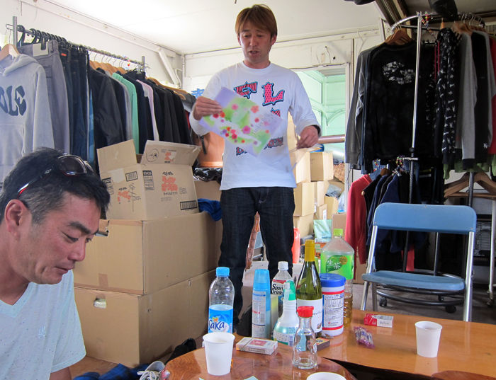 震災後、4月に入って連絡をもらい投入させてもらったウェアが綺麗に並んでいた。