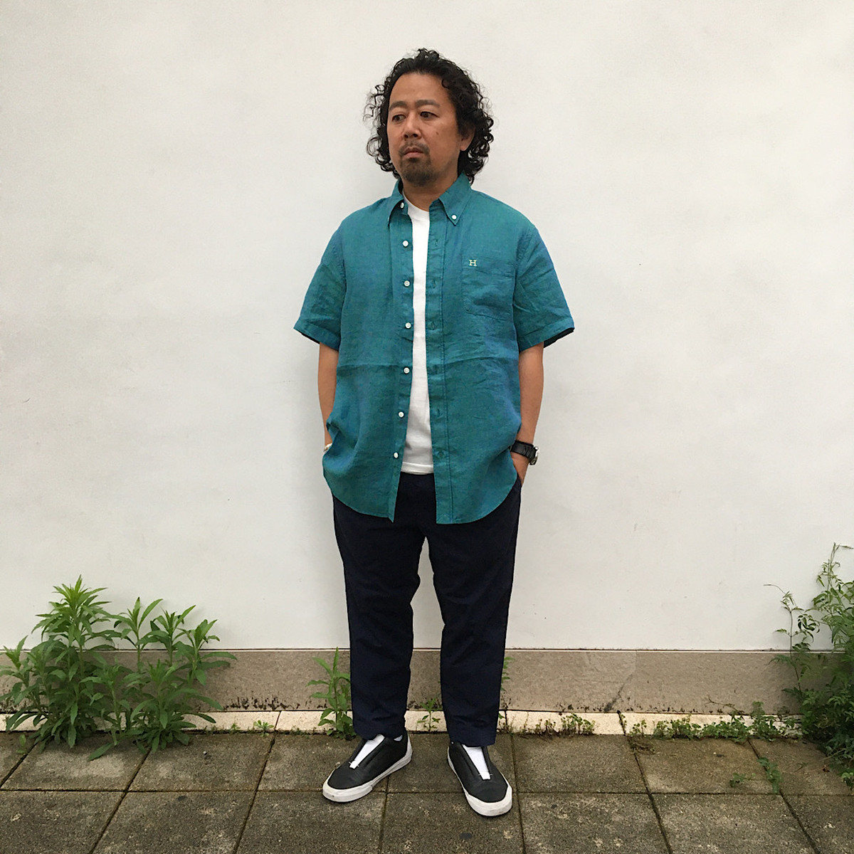 鮮やかな色使いが夏の装いにぴったりなリネン100%のボタンダウンシャツです。