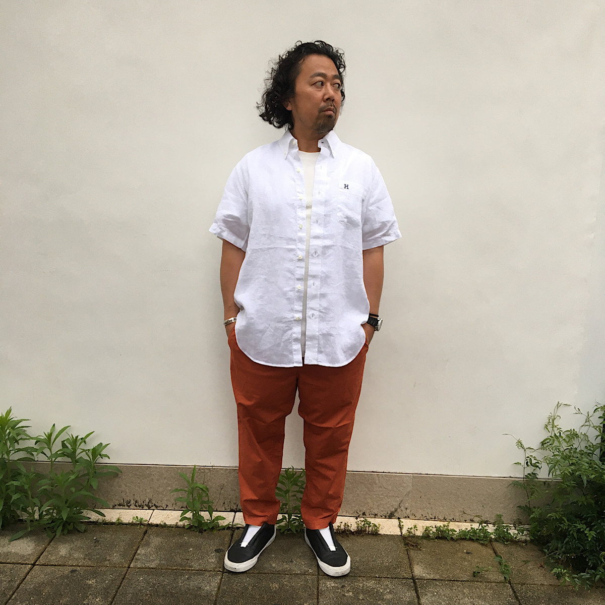 Hエンブロイダリー インディアンリネンショートスリーブシャツ