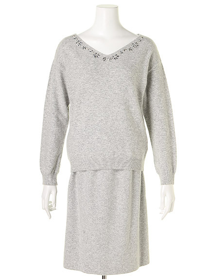 Apu☆衿ビジューVニット&スカートSETNEW ARRIVAL Apuweiser-riche衿ビジューVニット&スカートSET¥23,000+taxホワイトライトグレーライトブルーネイビーシンプルなVニットとタイトスカートとのSET UPで大人っぽい雰囲気別々でも着回しが効く優秀ITEMですあおいん店長も早速GetPuff 089-947-1666