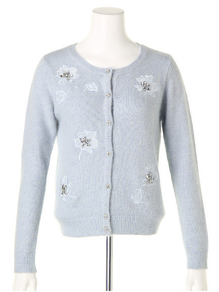 Apu☆アンゴラ刺繍単品カーデNEW ARRIVAL Apuweiser-richeアンゴラ刺繍単品カーデ¥17,000+taxホワイトライトグレーライトブルーピンクたっぷりと付いたビジューとフラワー刺繍が華やかで1枚で十分着映えしますニットのふんわりとした素材感で女性らしさもUP Puff 089-947-1666