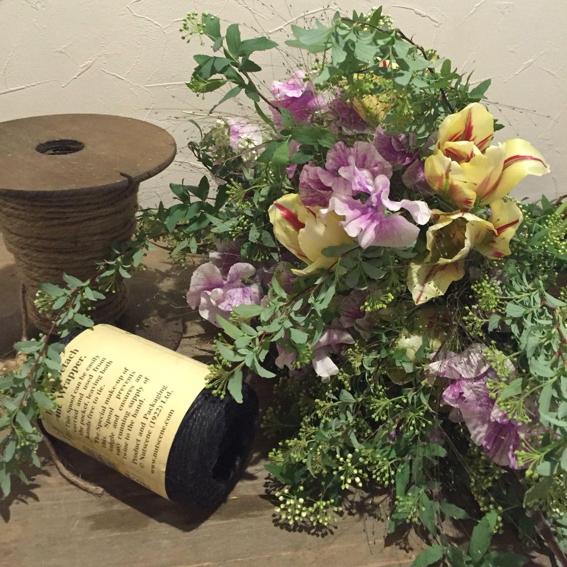 むずかしい枝ぶりのスイートピーをキレイに組み上げ とてもステキなステキなブーケの完成です(∩╹∀╹∩)❤