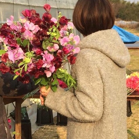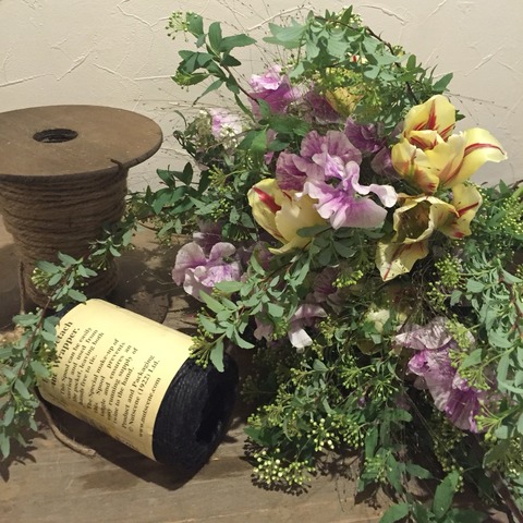 そのあとは、スイートピーを2種類選んで豆のお花と合わせたブーケロン作りです🎶