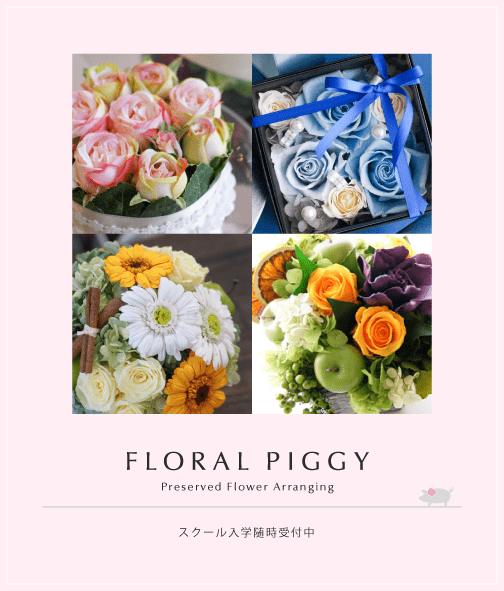 仙台市青葉区のプリザーブドフラワー教室 FLORAL PIGGYは、コロンビア政府公認のJPFA (日本プリザーブドフラワー協会) の認定教室です。