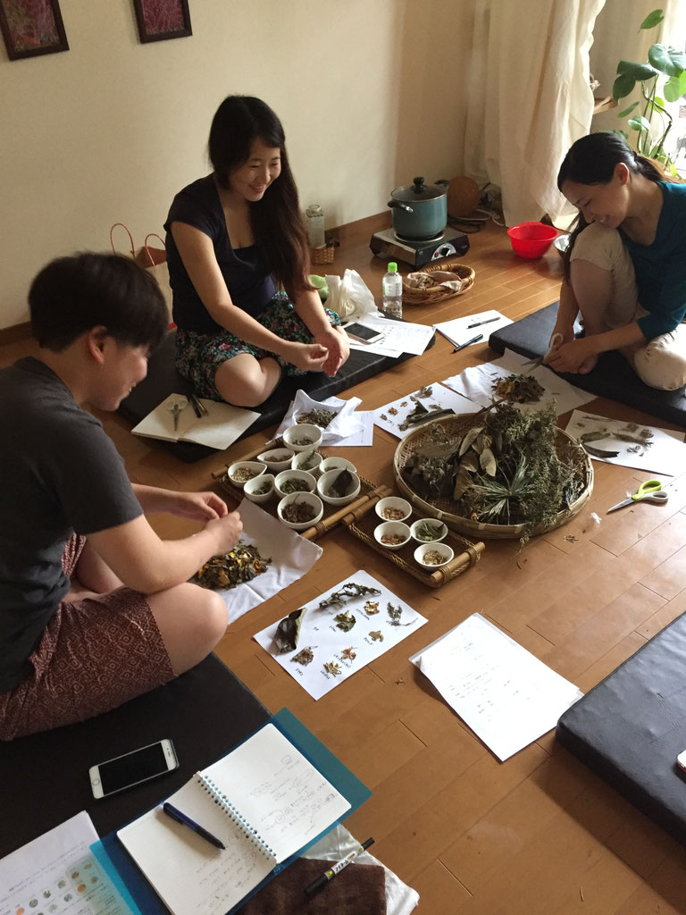 奈良で育てたハーブや薬草、タイのハーブなど十数種類のハーブ薬草に触れてハーブボールを作り、温め方やセルフケアのコツを知り、
