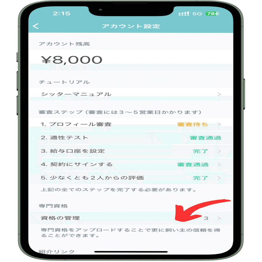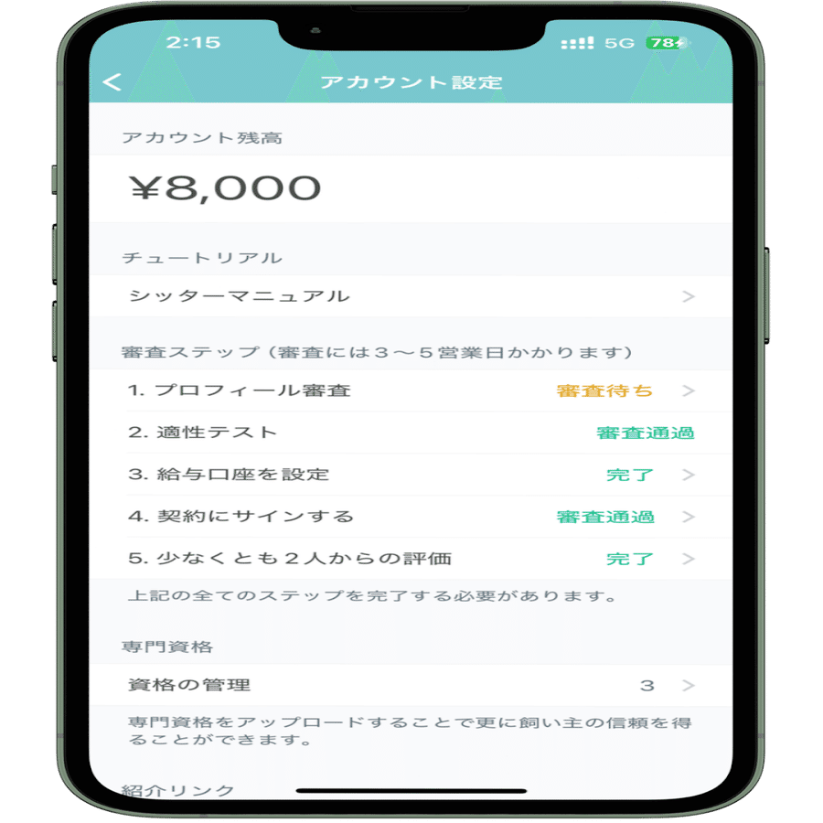 Fluvアプリを開き、「マイページ / シッターページ」に進み、必要なすべての審査を通過することで、シッターとして登録されます。
