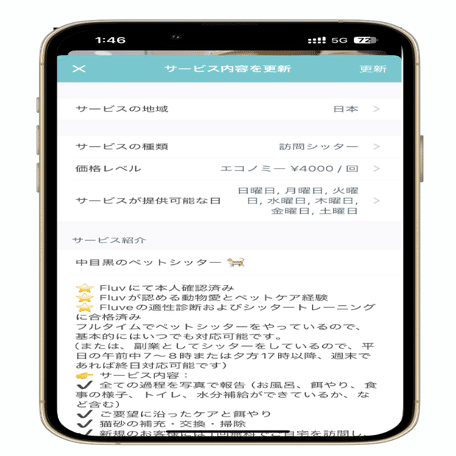・サービスの価格、地域、内容、受け入れ可能なペットを自分で設定する必要があります。