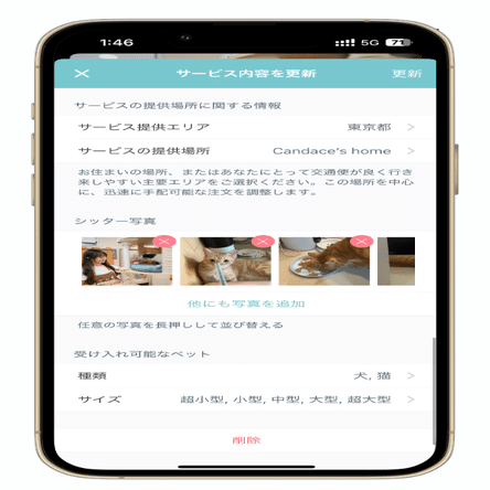 もし、ペットの一時預かりサービスを提供する場合、最初の写真は「お世話をする環境の写真」にしてください。これにより、ペットの飼い主が一目でお世話の環境を把握できるため、非常に重要です!