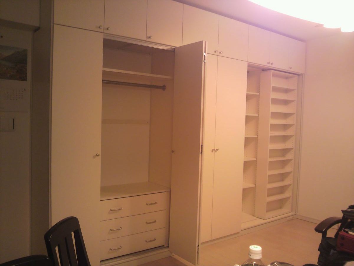 1分現場レポートこんにちは!施工担当の黒柳です!!今日の物件は、開ける方向にムダがない折戸と奥行き方向にムダのないスライドBOXがある迫力の物件でした!知ってましたか?ヨーロッパには、スライドBOXの家具ってないんですよ!狭い日本特有のものなんですね~!以上です。