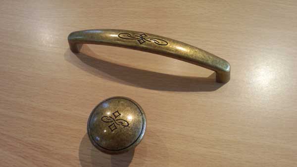 今までFOGAのハンドル・ツマミとしては全く考えたことのなかった路線。少しアンティークっぽい雰囲気のある、模様入りハンドルとツマミです。