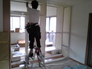 1分施工風景こんばんは。施工担当の大部です。寒いですね~今朝は、手袋なしでは作業がきつかったです今回は、特別編で施工風景を~長細いお部屋の真ん中に間仕切りFOGAの設置風景です。両面なので、コッチの部屋アッチの部屋の行き来で大変でしたー