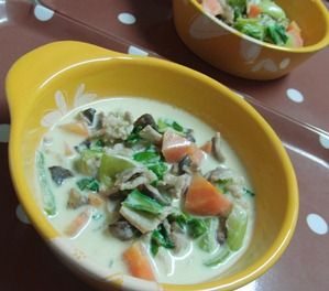 仕上げに 豆乳を加え さっとひと煮立ちさせたら・・・